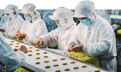 “快过年了,客户都在囤货,尤其是水饺、汤圆,我们现在马力开足,人手还是不够用。”跟着林科汝的脚步拾级而上,记者直接来到新工厂3楼的顶鲜手工水饺生产线旁。师傅们手指翻飞,“说是手工水饺,就是实打实的手工。”生产总监惠源笑着插了一句。