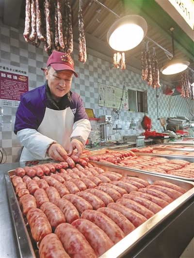 最忙的一天,于赛华灌了2000多公斤香肠。记者 步恩撒 摄