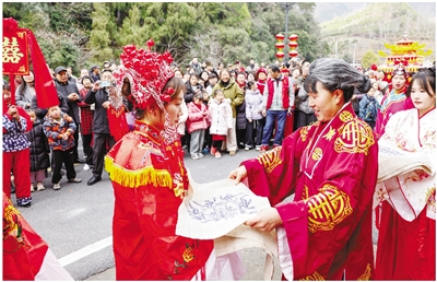本报讯(记者 程海波 汪毅华)正月初二,淳安县王阜乡管家村迎来了一年中最热闹的日子,一场“千年管家,麻绣良缘”非遗闹新春活动,沸腾了整个山村。在两位“新人”踩着麻绣布袋完成传统成亲仪式之际,这门从春秋战国时期传承至今的“八都麻绣”技艺,也重新融入了村民浓郁的新春烟火气。