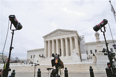 媒体在美国华盛顿的美国最高法院门前报道(资料照片)。 新华社发