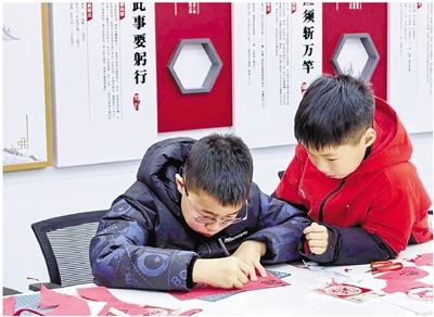 孩子们体验剪纸。 西湖景区供图