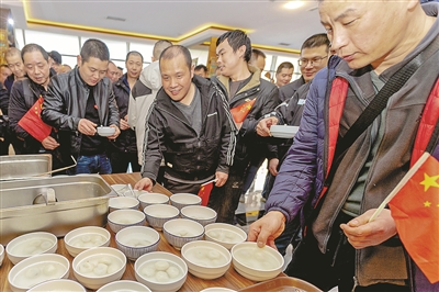 3月3日,在阿塞拜疆首都巴库的里海商务酒店,从伊朗撤离的中国同胞领取汤圆,共同庆祝元宵佳节。 新华社记者 陈俊锋 摄
