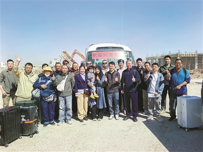 3月3日,在伊拉克巴士拉省,从伊朗撤离的中国公民入境后合影。 新华社发(中国驻巴士拉总领馆供图)