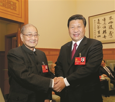 2012年11月14日,在党的十八大闭幕前,习近平同志同宋平同志在一起。新华社发
