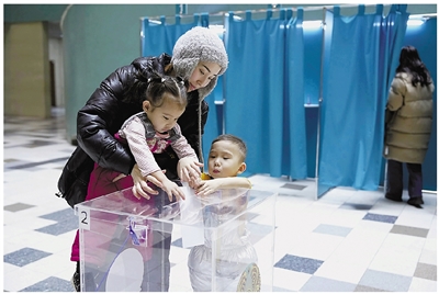 图为3月15日,选民在哈萨克斯坦首都阿斯塔纳的一处投票站参加就新宪法草案举行的公投。哈萨克斯坦中央选举委员会主席阿布季罗夫3月17日早些时候宣布,根据15日的全民公投结果,哈新宪法草案获得通过。据新华社消息