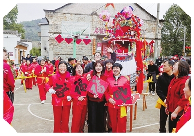 石龙村发动全村村民参与舞板龙活动。