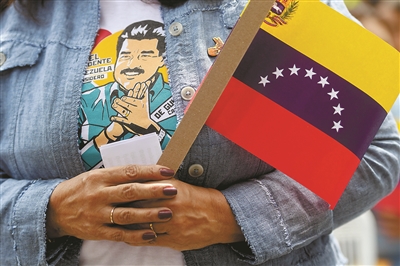 26日,在委内瑞拉首都加拉加斯市中心的玻利瓦尔广场,一名参加集会的女子身穿印有委内瑞拉总统马杜罗形象的服装。 新华社发 (马科斯·萨尔加多 摄)