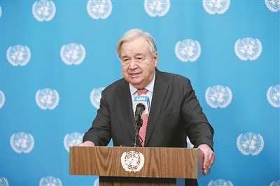 3月25日,联合国秘书长古特雷斯在位于纽约的联合国总部举行的记者会上讲话,呼吁美国和以色列结束对伊朗的战争,同时敦促伊朗停止攻击邻国。 新华社记者 谢锷 摄