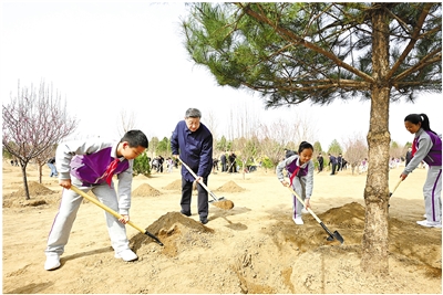 在京中共中央政治局委员、中央书记处书记、国务委员等参加植树活动。