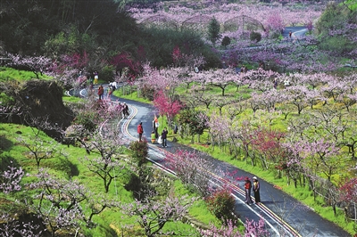近日,桐庐县横村镇阳山畈村的近3000亩桃林进入盛花期,整个村庄绯云漫卷、铺满春色,吸引各地游客纷至沓来,桃林间穿梭着踏春的市民、采风的摄影师与直播的博主。 阳山畈村有着150余年的种桃历史,以盛产水蜜桃而闻名。