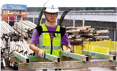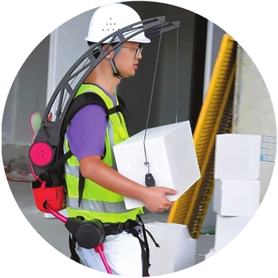 蚂蚁二期项目建设现场,施工人员通过可穿戴式外骨骼设备辅助完成重物搬运等高负荷动作。市建委供图