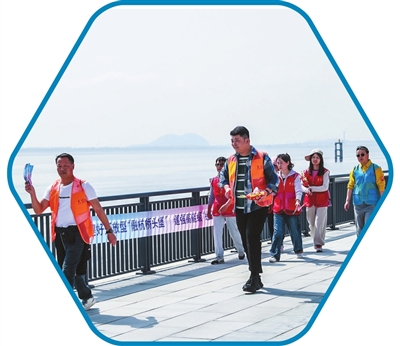 记者在现场看到,昔日的封闭施工区已是移步换景:灰白色的堤身如巨龙卧波,绵延舒展;堤顶的绿道草木葱茏,绿意盎然;造型别致的空中栈道临岸延伸,凭栏远眺,壮阔的江景尽收眼底。不仅如此,这里还配套建设了慢行系统、休闲球场、生态湿地和观赏草田,让原本坚硬的钢筋混凝土堤身,充满了自然的生机。