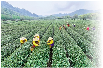 近日,西湖景区的龙井茶园里,西湖龙井43号进入采摘旺季,大批采茶工抓紧采摘明前西湖龙井茶。西湖龙井茶历来以清明前采摘的头茶为贵,近期气温适宜、雨水充沛,茶芽生长旺盛,也正是茶农们一年中采茶、炒茶、卖茶的最关键时节。