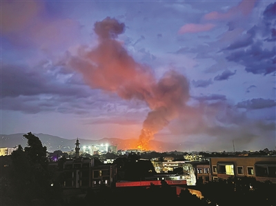 图为3月31日傍晚,布隆迪经济首都布琼布拉传出持续爆炸声,火光和浓烟升上天空。