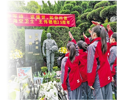 本报讯(首席记者 陈浩 记者 温欣欣 通讯员 蒋增钢 陈华俊)今年4月1日,是“海空卫士”王伟牺牲25周年纪念日。浙江安贤园内松柏凝翠,王伟烈士墓前摆满鲜花和战机模型,各地群众纷纷前来,以最朴素的方式缅怀这位用生命守护祖国海空的英雄。