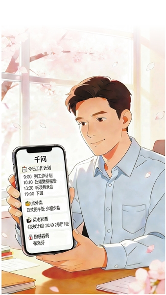 电梯门合上。这一天还没有结束——他先去看电影,回家后可能还要改一篇稿子。但不同的是,他知道这些事会被千问有条不紊地安排、提醒,甚至代劳。