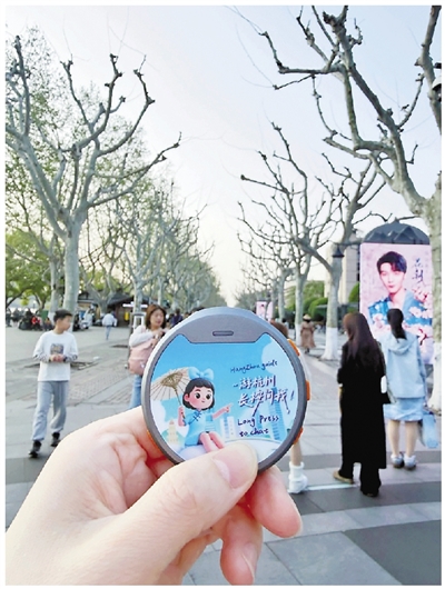 今年春天,这款27克的轻巧徽章在清河坊与西湖湖滨率先上线。作为国内首个城市文旅智能体“杭小忆”的随身携带版,其采用了磁吸的设计,游客往衣领或背包上一贴,就能随时与这位“旅游搭子”对话。