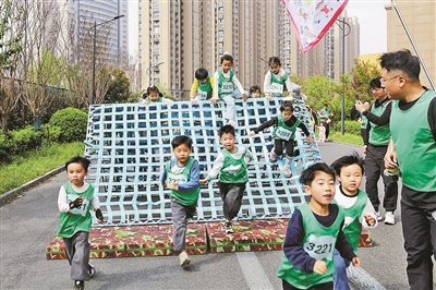 近日,萧山区文博幼儿园开展“亲子同行向未来”春季户外酷跑活动,孩子们与家长一起从园门口的古海塘遗址出发,沿着春意盎然的北塘河绿道,用脚步丈量自然、用眼睛观察自然,以勇敢和顽强越过轮胎阵、木栅栏、铁栏杆、圆木柱等一道道障碍,在5公里的酷跑中收获快乐、健康成长。通讯员 张祥荣 摄 记者 李忠 文