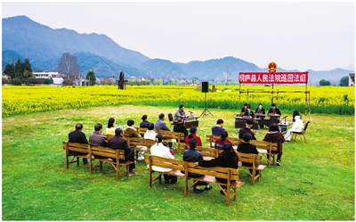 本报讯(通讯员 童法 记者 王艳颖)近日,桐庐县人民法院的法官们带着国徽来到梅蓉村,开启了一场江边花田里的巡回审判。这是一起涉网约车事故,小陈驾车与方师傅的网约车发生碰撞,小陈全责。方师傅索赔车辆维修费用以及停运损失未果,诉至法院。“这类纠纷近年多发,大家对其中涉及的法律知识却了解得不多。”经过考量,主审法官周昊决定直接把庭审搬到村里,邀请村民来旁听,让巡回审判变成一堂“法治公开课”。