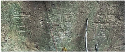 我如此轻描淡写,似乎一切得来全不费功夫。实则不然,当我第一次来到九曜山造像所在的那片广阔的岩壁,当朋友指出“香严界”题记,即使近在眼前,我仍然需要张大眼睛,仔细辨识方可确认。而在题记未曾发现之前,奚珣强想必是在毫无目标却又充满坚定信念的状况下,逐寸爬梳着岩壁,终于在汪洋大海中打捞出小小的印记。其难度绝不亚于1958年台北故宫博物院李霖灿先生在范宽《溪山行旅图》右下角树叶丛中发现“范宽”名款。