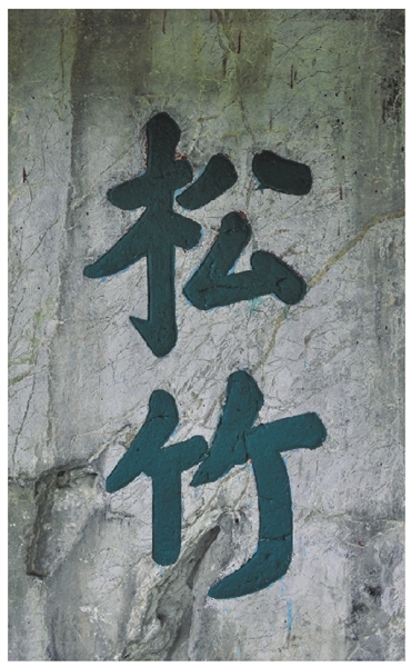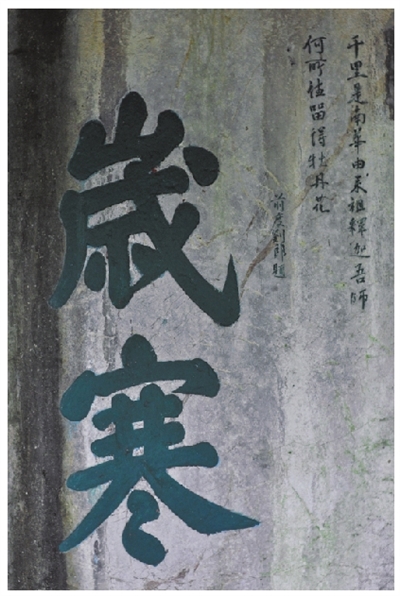 吴山“感花岩”两侧题刻:岁寒 松竹 (明代左赞、吴东升所书)