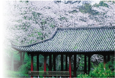 中式红亭、漫天粉樱,古典与浪漫在春风里撞个满怀,每一帧都像古画。(杭小植)