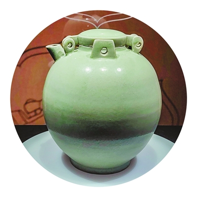 甚至,更远的辽国,辽太祖耶律阿保机、辽太宗耶律德光都见到过秘色瓷。钱镠、钱元瓘、钱弘佐曾9次派滕彦休等出使契丹。在吴越文化博物馆中,有一只壶与其他器物格格不入,就是草原民族马背上的皮囊。