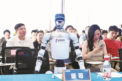 活动评委席上,“鉴哥”面前的席签显得格外显眼。很多人都是第一次看到为机器人做的席签。
