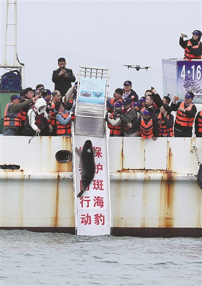 4月16日,5头西太平洋斑海豹(以下简称“斑海豹”)在大连被放归大海。其中3头为辽宁省农业科学院所属辽宁省海洋水产科学研究院救治的斑海豹,另外两头为大连圣亚海洋世界人工繁育的斑海豹。新华社记者 韩赫 摄
