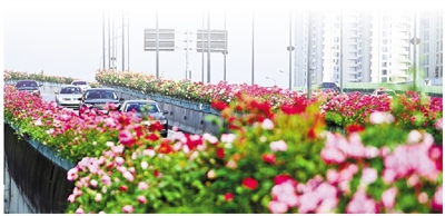 目前,全市高架月季种植总量超220万株,花廊总长500公里以上,织就“全域覆盖、主次分明、四季成廊、特色鲜明”的城市空中花网。空间布局上,已形成主城核心贯通、江南岸连片成景、外围全域延伸、枢纽节点点睛的全域格局。中河、上塘、秋石、留石、德胜高架构筑主城核心花廊骨架;时代高架、彩虹快速路等铺展江南片区连绵花带;东湖、望梅、运溪等高架向余杭、临平、钱塘等板块延伸,串联老城底蕴与新城活力。