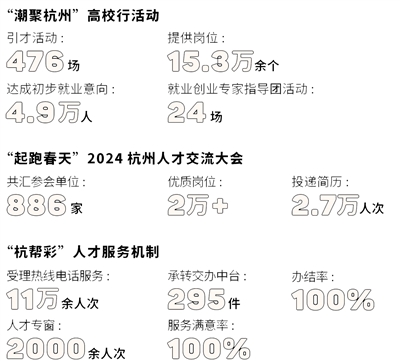 今年,为抢抓企业招聘和大学生求职窗口期,杭州市区两级联动,精心组织了“潮聚杭州”高校行活动,赴市内外重点高校开展线下校园招聘等引才活动476场,为高校毕业生提供岗位15.3万余个,达成初步就业意向4.9万人,同步开展杭州市就业创业专家指导团活动24场。