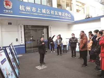 “社区矫正是干什么的?具体怎么理解?”来自杭州开放大学的陈老师一到社区矫正中心,便追着讲解员提问。工作人员通过门口展板中的10个社区矫正普法故事,以普法漫画的形式讲述社区矫正对象从入矫到解矫的各个环节。随后,工作人员还耐心地引导大家依次参观社区矫正中心的三区十八室,详细介绍了社区矫正报到、宣告、训诫、信息采集等执法环节;演示了远程点名、视频督察、面部比对、视频会议、轨迹核查、心理帮扶等信息化系统;讲解了“社会名人、心理专家、专业律师”三支志愿者团队的教育帮扶工作,通过沉浸式场景转换,使大家既体验到严格的监督管理,又感受到贴心的人性化帮扶。当天,社区矫正中心恰好在开展职业技能教育——茶艺技能培训,偌大的课堂挤得满满当当,一位社会志愿者代表看后感慨:“以前真的不了解社区矫正工作,真想不到在严格监督管理的同时,你们一直在做这些暖心的工作,让这些犯过错误的人得到鼓励,使他们能真正改过自新。”