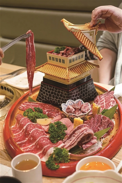 古代宫殿形式的烤肉摆盘你见过没?在禅猫庭院烧肉里,与澳洲极上和牛M9+眼肉搭配的正是一座座缩小版的城堡模型。