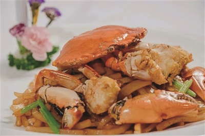 与年糕完美搭配的,还有来自隔壁三门县的特产青蟹。热油锅,入姜蒜,再加入处理好的青蟹翻炒,然后炒入年糕和芹菜。青蟹的蟹黄会将年糕染成金黄色,鲜美的蟹肉和弹性十足的年糕相得益彰,引爆味蕾。