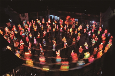 “板龙”又称“板凳龙”,早先是由家家户户的板凳相连组成,一条板凳两盏灯,龙身延展几百米。自古以来,龙到之处,行云布雨,龙的形象寄予了百姓“风调雨顺”的质朴愿景。