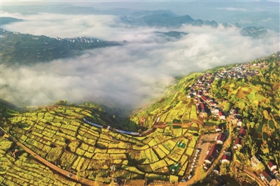 阳春三月,村子里最养眼的风景是沿山坡蔓延而下的千亩茶园和满山的油菜花。此时东风柔软,土地温热,茶园里沉寂了一个冬天的茶树,便会齐刷刷地冒出嫩绿的芽苞。它们吸饱了大地的芬芳,蓄足了山水的灵气,人未饮,已是陶醉。