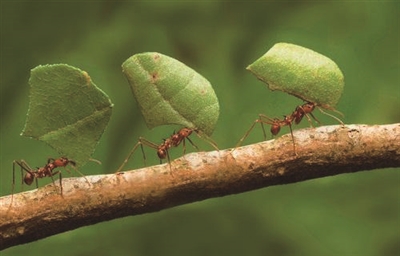 蚂蚁的腿部肌肉纤维有几千条,且有6条腿,搬东西时背部受力,将重力平均地分到各条腿上,因而承重力强,加上能平均地分布重物的压力,所以能搬动重几十上百倍的东西。据测定,一只蚂蚁能够举起超过自身体重400倍的东西,还能够拖运超过自身体重1700倍的物体。科学研究证明每100克蚂蚁能产生2929千焦(700千卡)的热量。蚂蚁体内含有一种结构非常复杂的含磷化合物,称为三磷酸腺苷,即ATP。在许多场合下,只要肌肉在活动时产生一点儿酸性物质就能引起这种“燃料”的剧烈变化,这种变化能使肌肉蛋白的长形分子在刹那间收缩起来,产生巨大的力量。