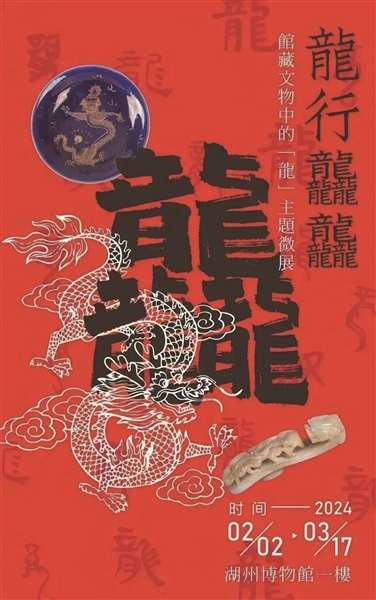 龘( dá )为中国古文,出自四库本《玉篇》,文字释义为群龙腾飞的样子,昂扬而热烈。看龙展迎龙年,不妨去湖州博物馆开启你的“寻龙”之旅。