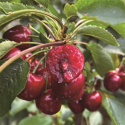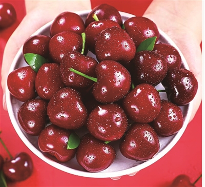 美早樱桃的外形是个爱心形,颜色通体鲜红,在阳光下闪着金属般质感的光泽。品尝一口,甘甜四溢的汁水,顷刻间包裹你的味蕾,质地厚实多汁、多甜少酸、果味浓郁,还有爆浆感。除了直接享受爆浆快乐,富含花青素和铁等微量元素的高颜值玛瑙红大樱桃也可以用来做成樱桃蛋糕等甜点。