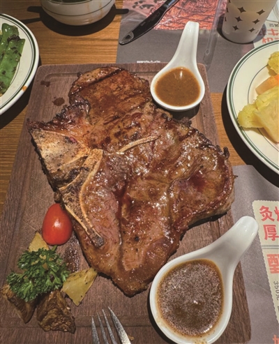 牛排区:主打澳洲M5厚切牛排,每块厚达2cm,采用低温慢煮+高温炙烤工艺,搭配黑松露酱或红酒汁。战斧牛排重达1.2kg,适合家庭分享。
