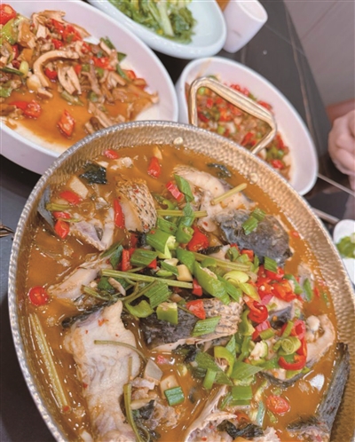 开化清水鱼:选用钱江源冷水鱼,现杀现做,搭配紫苏、青红美人椒,鱼汤呈奶白色,鱼肉嫩滑无土腥味。