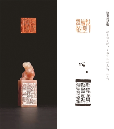 展览虽小,但立意新颖,主题鲜明,用篆刻的形式表达了宋人对“格物致知,即物穷理”的认识,充分体现出“为往圣继绝学”的理学思想对我们当代艺术创作的现实启迪意义。展览由文以载道和格物致知两部分组成,其中文以载道部分由西泠印社副社长童衍方、孙慰祖领衔,社员和省内优秀青年篆刻家共同参与,精心创作完成,集中展现了老、中、青三代印人的创作实力与专业高度。格物致知部分由林立独立创作完成,反映出他近年来在篆刻创作中如何传承与发展的深入思考和积极实践。