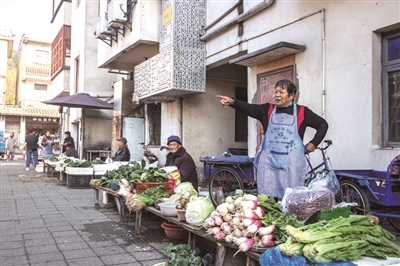吴山前村,露天菜摊。