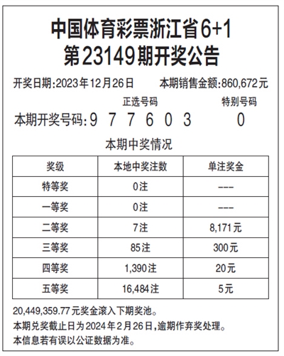 中国体育彩票浙江省6+1