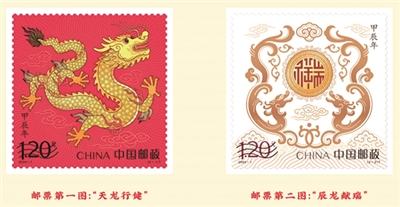 龙年邮票有2枚。祝福阖家团圆,盛世风范。