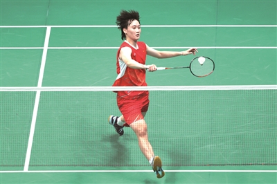 杭州亚运会羽毛球项目,中国队选手陈雨菲在比赛中。