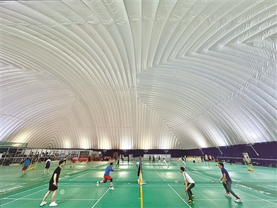 黄龙体育中心羽毛球馆,不少年轻人在打羽毛球。