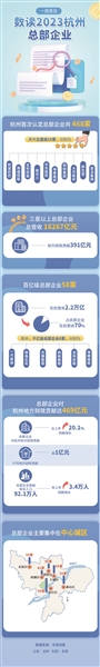 截至去年10月,杭州认定百亿级总部企业58家,千亿级总部企业6家。