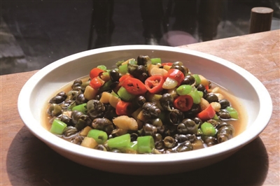 美丽公路带火的美食自然不仅仅是细米面。得益于优秀的水质,在小芝镇还有优先品尝牛头山胖头鱼的特权,肉质鲜嫩肥美的鱼头,往往因为食客太多而“一头难求”。此外,还有清水螺蛳、小芝特色家烧泥鳅,以及小芝镇在山野里肆意撒欢的跑山鸡和土猪做成的肉菜。