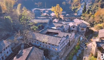村舍依山而建,一条小溪从村子中间穿过,把民居分在溪水的两边。房子都是老式建筑,石头的墙基、木头的楼。部分有过修缮,看上去古朴却崭新。